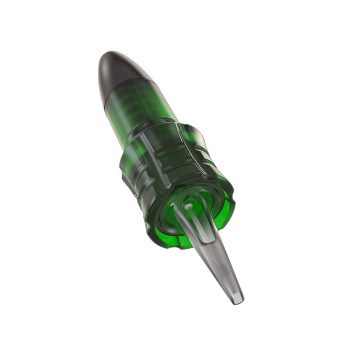 Stigma Nadelmodule sind auf Sicherheit ausgelegt. Sie sind mit einer äußeren Versiegelungskappe ausgerüstet, um das Durchdringen von Tinte in das Innere des Griffstück und der Maschine zu verhindern. In Verbindung mit einem Stigma-Griffstück entsteht eine doppelte Versiegelung - die Verbindungsstelle zwischen Nadelmodul und Griffstück ist vollständig dicht. Das schirmförmige Design des Nadelmoduls verhindert, dass Tinte oder Blut seitlich überlaufen. Durch die ergonomische Form ist es möglich, das Nadelmodul direkt zu greifen, dh. die Maschine weiter unten als normalerweise gehalten werden, was für ultimative Kontrolle sorgt .
