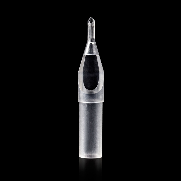 Eine 50er Box von 50 Killer Ink PREMIUM transparenten Einwegspitzen, diamant. Die Spitzen sind einzeln steril eingeblistert. Transparente Spitze ermöglicht verbesserte Kontrolle über Nadeln und Farben.
