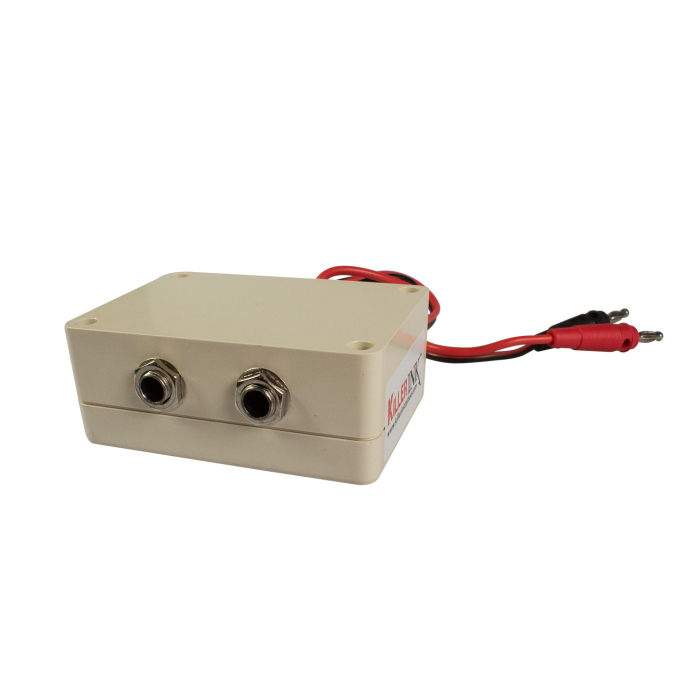 Die Konverterbox mit Bananenstecker ist einfach an Ihr mit einer Bananen-Buchse ausgerüstetes Netzteil anzuschließen, damit Sie Ihre Clipcords und Fußschalter mit Klinkenstecker benutzen können.