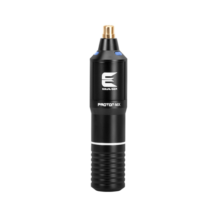 Die Equaliser Proton ist eine Tattoomaschine von dem polnischen Hersteller Kwadron. Das fortgeschrittene Getriebesystem sorgt für leisen Betrieb und Zuverlässigkeit dieser Maschine für Nadelmodule. Man merkt sofort, dass keine Schwingungen auftreten. Der Rahmen besteht aus anodisiertem Aluminium höchster Qualität, wodurch die Maschine sehr leichtgewichtig ist: nur 130 Gramm.