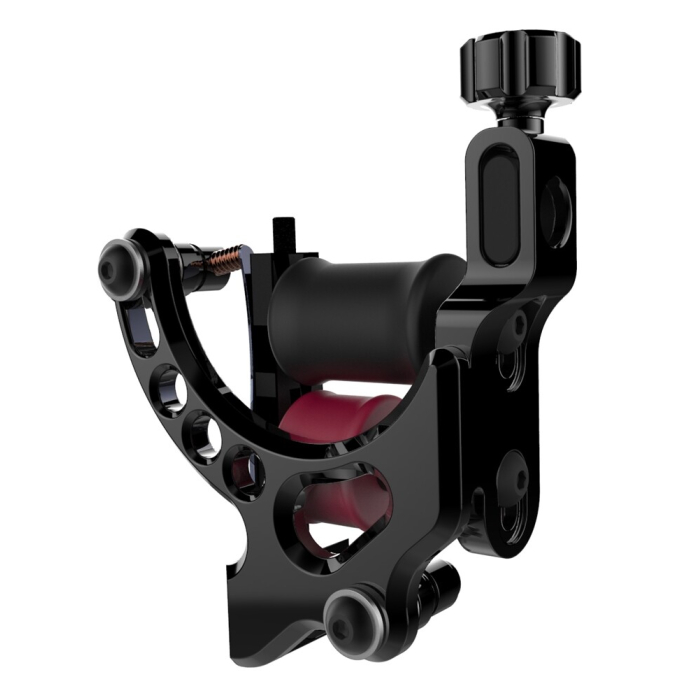 The Exactor III bedient alle Nadel, von einzelnen bis zu 50er Magnumnadeln. Auch wenn diese Maschine richtig viel Kraft hat, erlaubt es einem, mehrmals über eine Stelle zu stechen, ohne dass der Haut zu viel Trauma zugefügt wird; dies ist der einzigartigen Einstellungsweise jeder FK Irons Maschine zu verdanken.