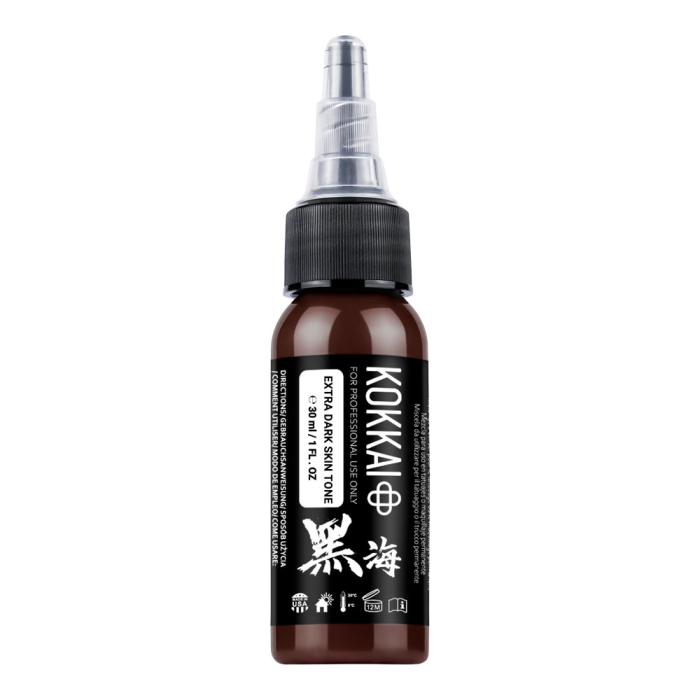 Build lifelike skin tones with Kokkai Sumi Ink in Extra Dark Skintone, part of a 5-shade set designed for portraits, realism, and covering existing tattoos. Offering smooth coverage, balanced undertones, and natural-looking results, it's perfect for layering highlights, mids, and undertones.
