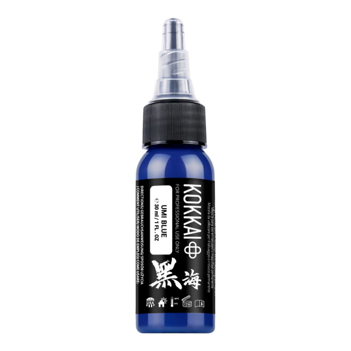 Capture the essence of the ocean with Kokkai Sumi Ink in Umi Blue, a bold, cool blue perfect for shading, filling, and enhancing nature and landscape tattoos. Ideal for colour surrealism and new school designs.