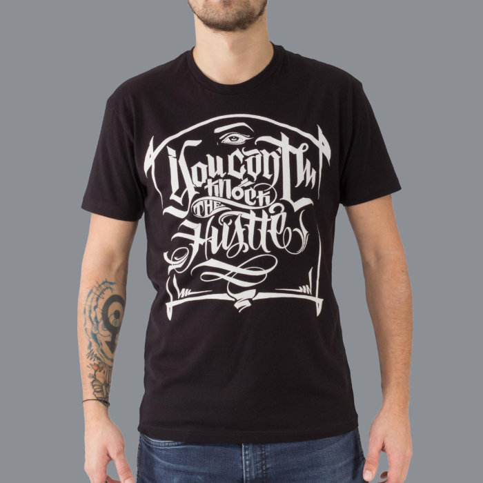Luxury Hustle Wear T-Shirt in Schwarz. Aufschrift: „Cant Knock The Hustle" - Design von El Whyner.