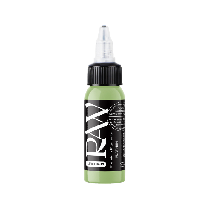Leprechaun ist eine leuchtende, hellgrüne Tattoo-Farbe aus der EU REACH-konformen Platinum-Reihe von Raw Premium Pigments.
