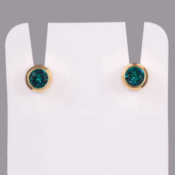 Studex Ohrstecker mit einem blauen Zirkonia in vergoldeter Einfassung. Als Einzelpaar oder eine Sparpackung von 12 Paar erhältlich.