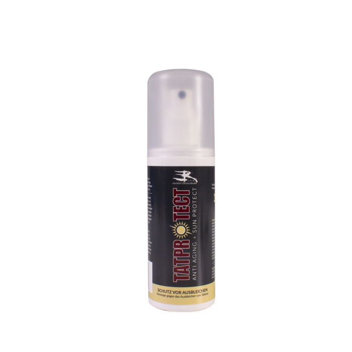 Das TATProtect Anti-Aging und Sun Protect mit LSF 30 wirkt gegen das Ausbleichen von Tattoos und gegen vorzeitige Hautalterung. Es ist wasserfest, schützt vor schädlichen UVA und UVB Strahlen, spendet Feuchtigkeit und lässt die Haut geschmeidig bleiben. Das enthaltene Vitamin E erhöht die Widerstandsfähigkeit der Haut, fördert den Stoffwechsel und vermindert die vorzeitige Hautalterung durch freie Radikale. Die Spray-Textur von TATProtect Anti-Aging und Sun Protect ist kühlend, erfrischend leicht und zieht sofort ein.