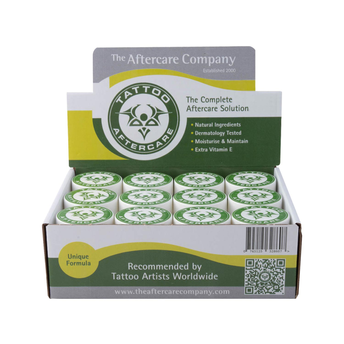 Tattoo Aftercare® von The Aftercare Company ist die erste dreifach wirkende Nachbehandlung, die entwickelt wurde, um die Qualität von Tattoos langfristig zu erhalten und zu befeuchten. Diese Pflege ist von Anfang bis Ende verbessert worden und erhält die Farbe und Helligkeit des Tattoos, wodurch die Farbkraft von Schwarz und der Farben geschützt wird. Bei geheilten Tattoos wird die Haut belebt und regeneriert und die Helligkeit älterer Tattoos wieder erneuert. Tattoo Aftercare wurde mit dem ersten Gold Award von Cruelty Free International (ehemals BUAV) ausgezeichnet und enthält 100 % natürliche Inhaltsstoffe. Es ist frei von Parabenen, Konservierungsmittel, Mineralöl, Alkohol und Farbstoffen. Die Formel basiert auf einer einzigartigen Mischung aus Lavendel, Teebaumöl und Niaouli, ist reich an Vitamin A, D und E und wurde speziell entwickelt um Krustenbildung und Juckreiz zu reduzieren, die Haut mit Feuchtigkeit zu versorgen und die Heilung zu beschleunigen.