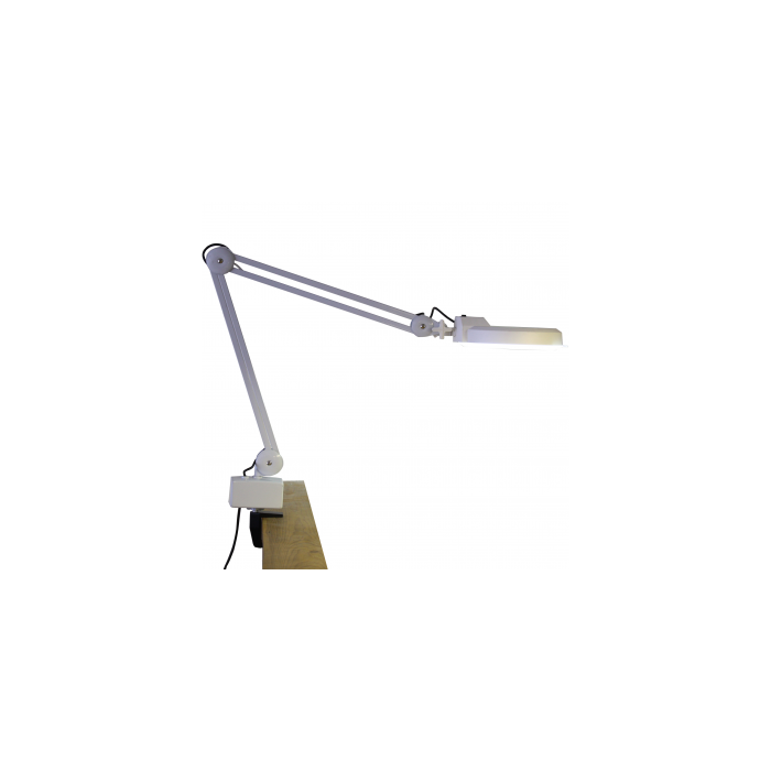 Die Tischlampe ist mit einer Halteklammer ausgestattet und kann an jedem Tisch bzw. jeder Arbeitsplatte mit einer Dicke von bis zu 5cm fixiert werden. In jedem Studio unentbehrlich.